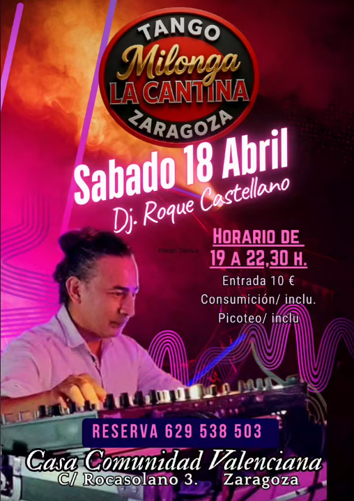 Como cada tercer sábado de mes, este 18 de abril «La cantina» vuelve con sorpresas y un ambiente milonguero que dejará huella, con la musicalización de Roque Castellano. Al finalizar la milonga seguiremos con un picoteo y otros ritmos.