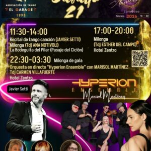 En este calendario recopilamos toda la actividad tanguera de Zaragoza y también de fuera, cuando se nos comunica para su divulgación. Esta agenda se actualizará periódicamente para que la información esté siempre al día y puedas estar al tanto de toda la programación.